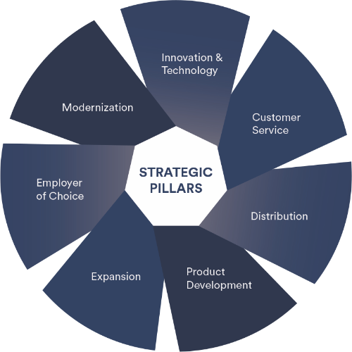 At the foundation of our business strategy lies seven strategic pillars, which help us maintain our commitment to being your reliable insurer.